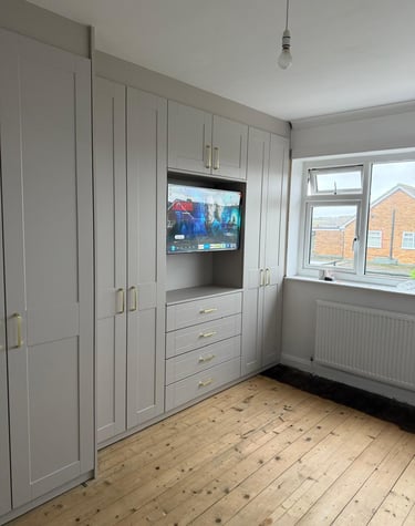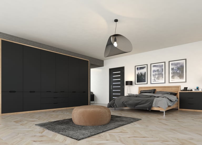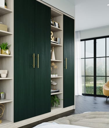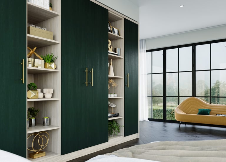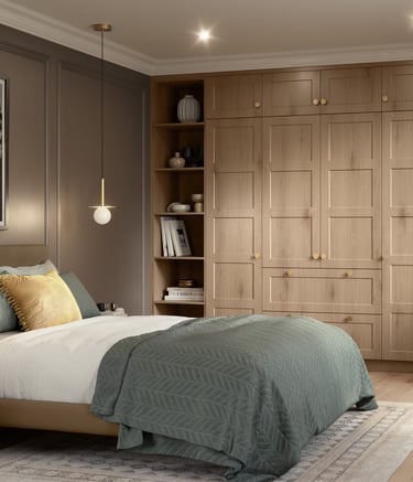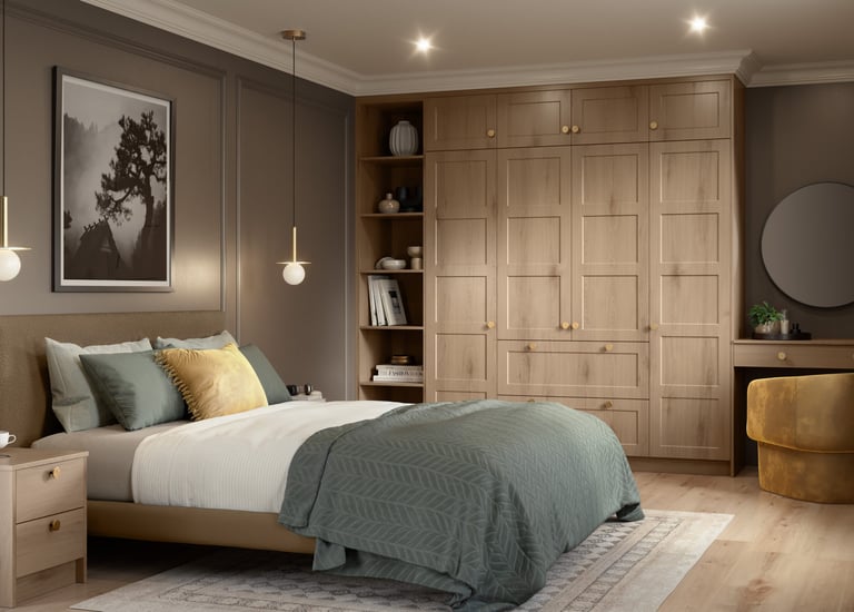 Timeless designs blending form and function. All our bedrooms are made to order offering customers endless choices in colour and door combinations. All Bedrooms come with bespoke internals colour matched cabinets.