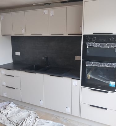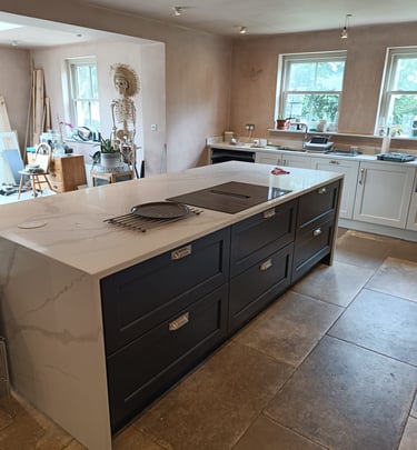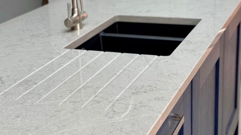 Kitchens By Design offers all worktop finishes with either matching upstands or full splashbacks